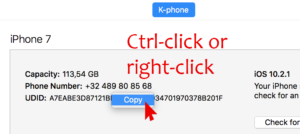 - Control-click (Windows: right-click) and you will be able to copy the UDID.